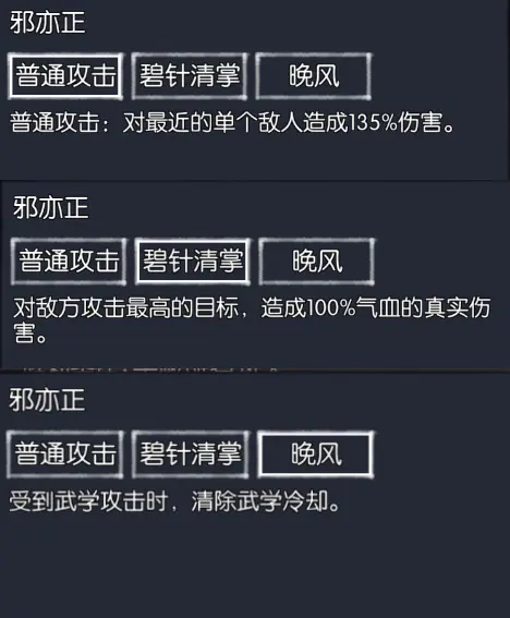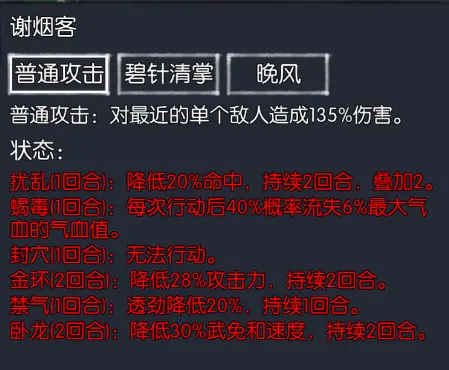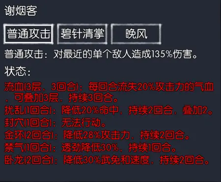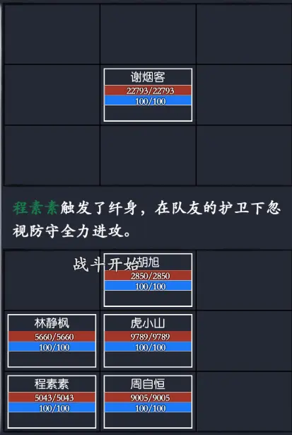 本篇我们来看通天塔第35层:玄铁令主,单BOSS关。老样子先看他的技能介绍:普攻是打最近的一个侠客,最重要的一个技能是攻击我方攻击最高的侠客。首先想到的就是一个可以抗伤的倒霉蛋(划掉)侠客:杨不为。他的天赋技能是能替身后队友承担50%的伤害。还有一个能承担伤害的侠客是虎小山,需要点满1-1技能,他承担条件是站位在相邻的侠客。