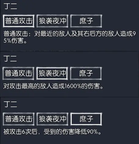 第二套阵容是如果小林练度不够秒丁二怎么办,这关有高练小何配合小林子也很好过。主角带太虚拳,速度要比其他人都快。上来献祭掉大剪和陆采薇,陆采薇死后给队友加速,小林一剑甩掉丁大,丁二留给小何和主角解决,最后大概率只剩主角活着,能过就行。